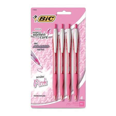 BIC Atlantis Original Retractable Ball Pen Supporting Susan G. Komen, Medium Point (1.0 mm), Pink, 4-Count (6 packs, 24 pens total)