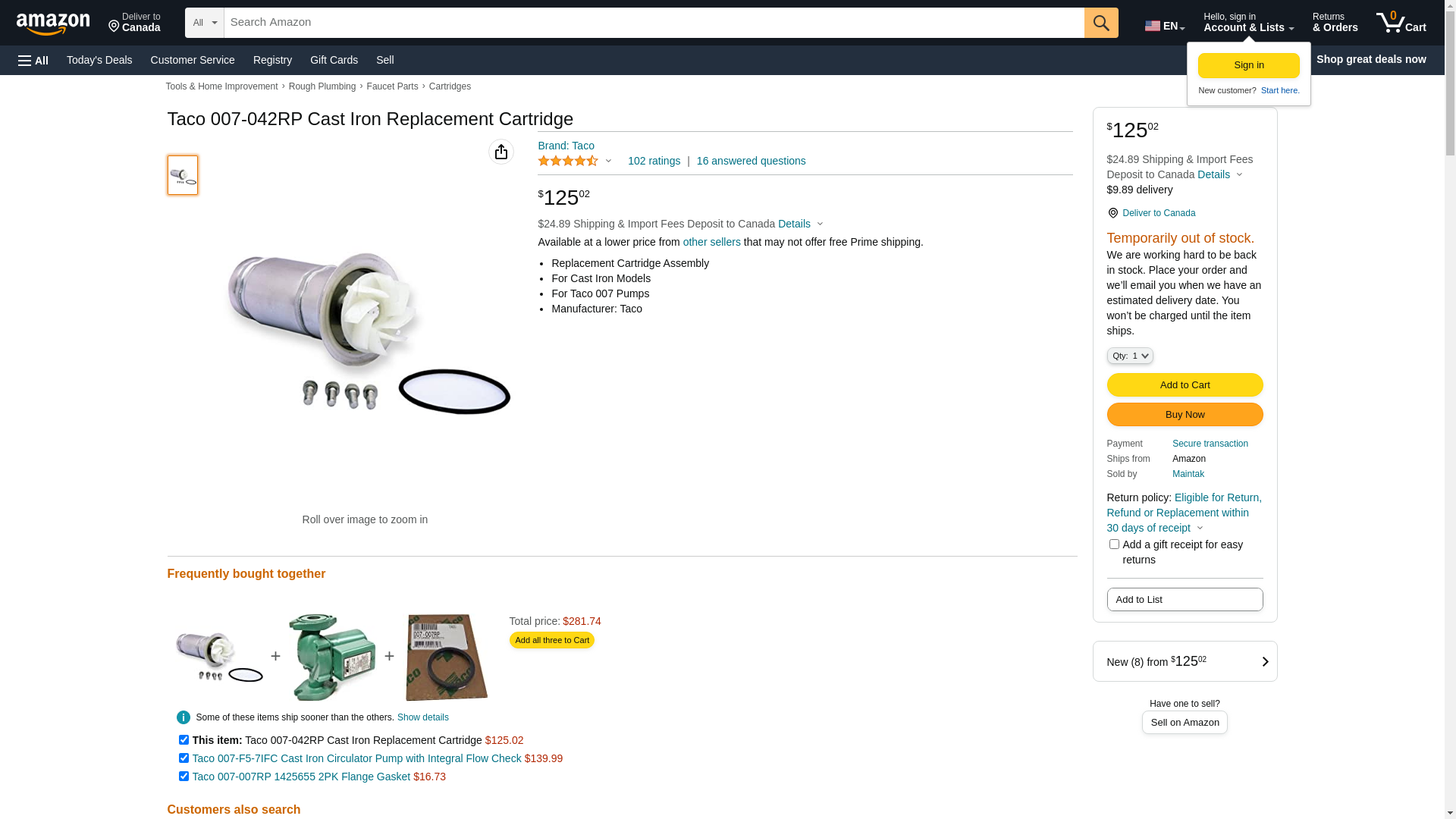 | Feature | Taco Pump Replacement Cartridge Assembly #007-042RP |