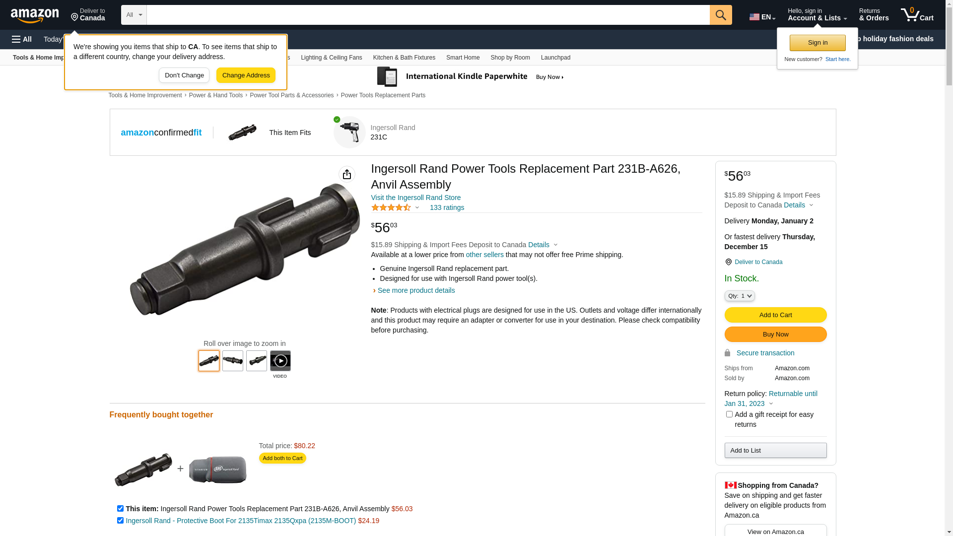Ingersoll Rand Power Tools Replacement Part 231B-A626, Anvil Assembly