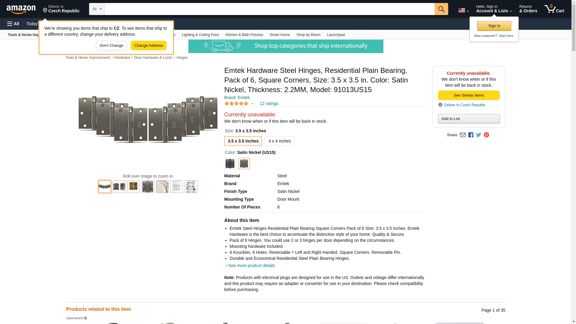 - Emtek Steel Hinges Residential Plain Bearing Square Corners Pack of 6 Size: 3.5 x 3.5 inches. <br>Emtek Hardware is the best choice to accentuate the distinctive style of your home. Quality & Secure.