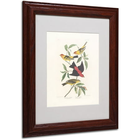 This matted framed art piece features Louisiana tanagers and a scarlet tanager perched on a branch. <br /> <br />Giclee print under acrylic in a dark wood frame. Giclee (jee-clay) is an advanced printmaking process for creating museum quality fine art reproductions. This high quality print is matted using antique white matting and comes in a dark wooden frame. A clear acrylic facing is added to protect the print. The piece is fully assembled by professional frames and comes ready to hang. The antique white mat allows the image to really stand out, making it a great addition to any space.
