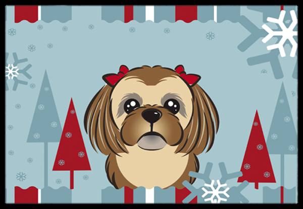 Carolines Treasures BB1745MAT Winter Holiday Chocolate Brown Shih Tzu Indoor & Outdoor Mat, 18 x 27 in.