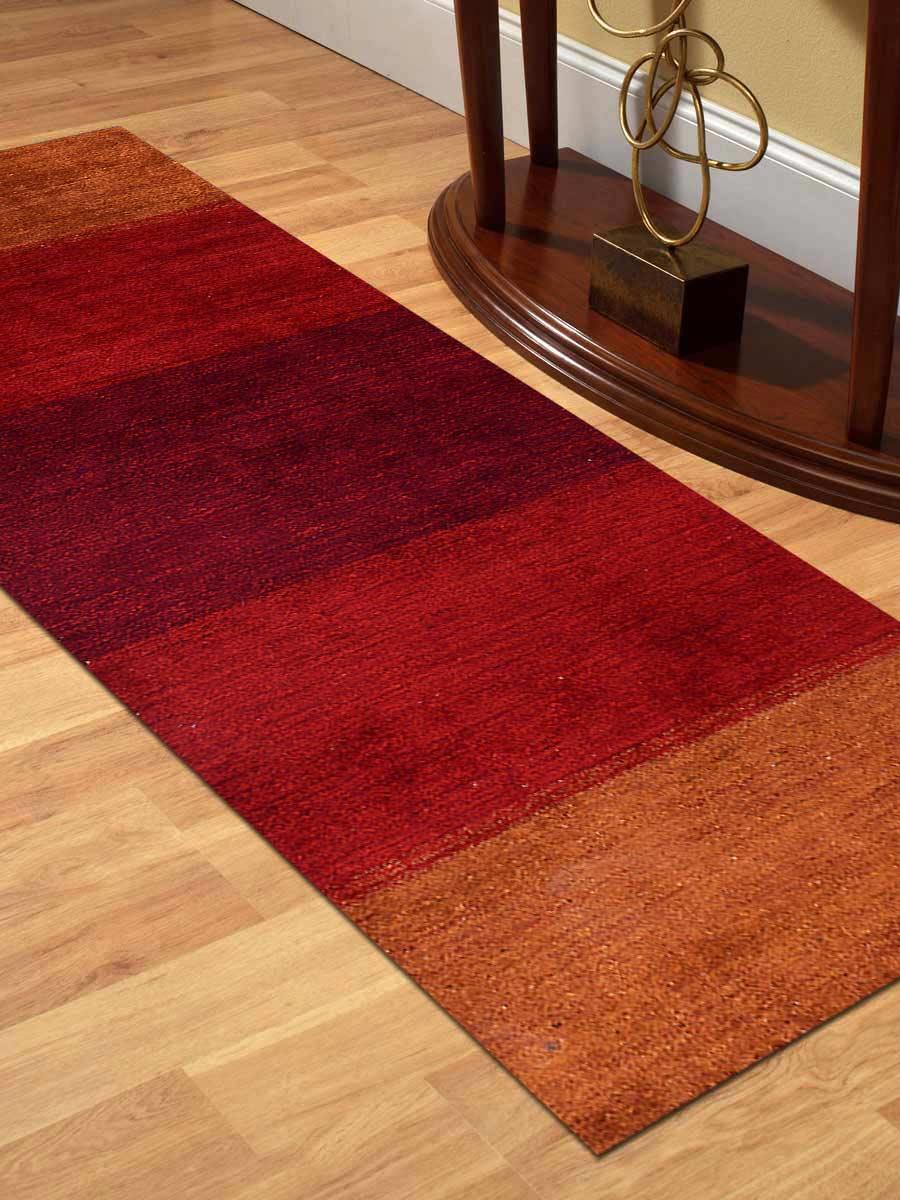 212 Main USLS0215L1526G25 Hand Knotted Gabbeh Silk 2 ft. 6 in. x 10 ft. Contemporary Runner Rug, Orange & Red