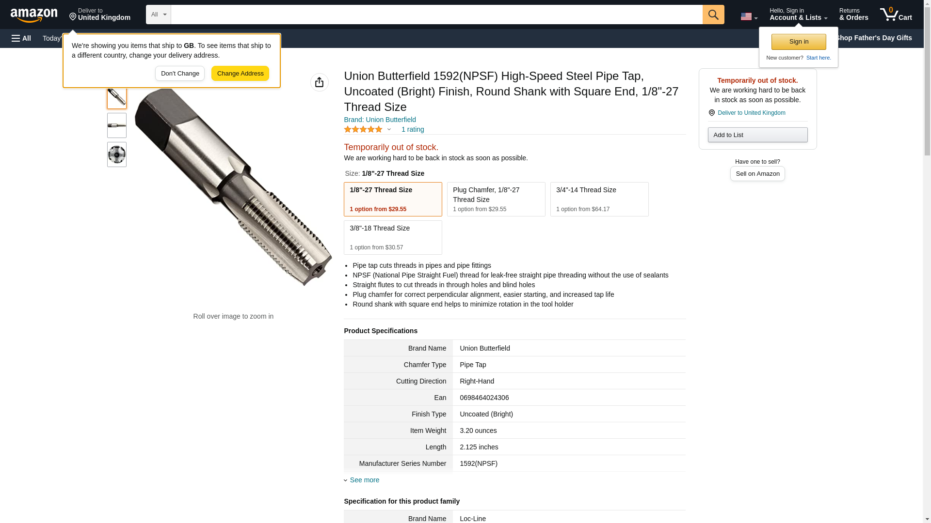 Union Butterfield 1592(NPSF) High-Speed Steel Pipe Tap, Uncoated (Bright) Finish, Round Shank with Square End, Taper Chamfer, 1/2"-14 Thread Size