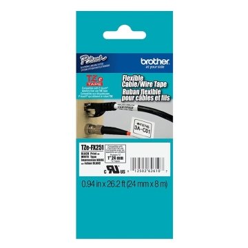 Brother TZEFX251 TZe Flexible Labeling Tape for P-Touch, 1-Inch x 26-1/5 ft, Black on White