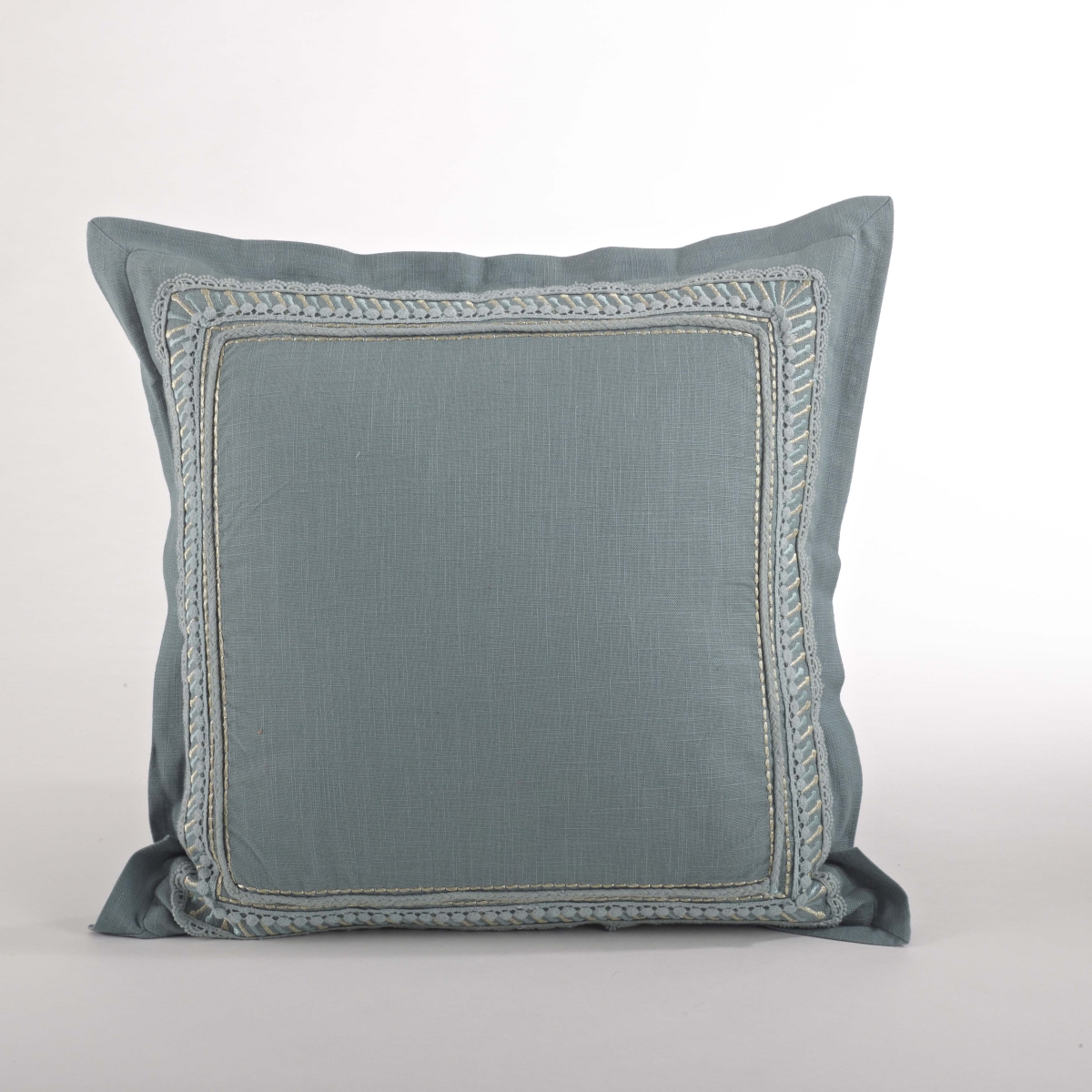 SARO 2500.SE18S 18 in. Embroidered Border Down Filled Throw Pillow Sea Green