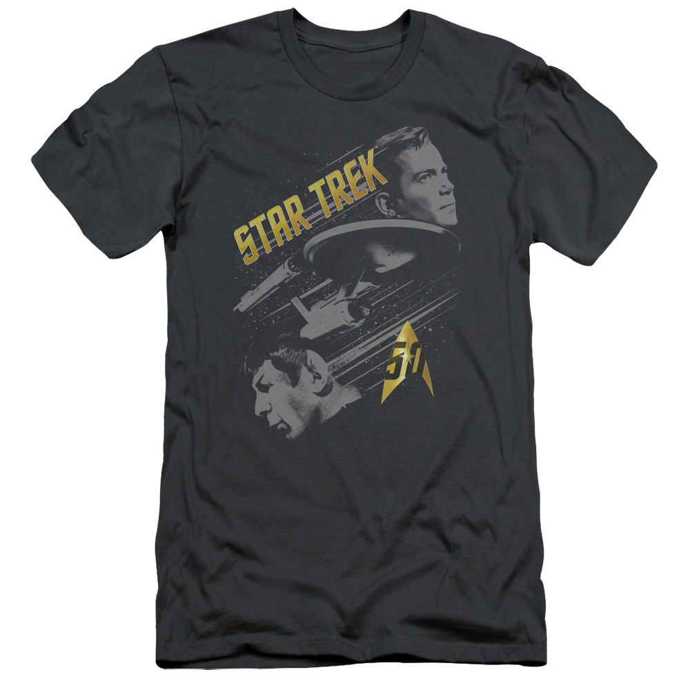 Trevco CBS1757-SF-1 Star Trek & 50 Year Frontier Short Sleeve Adult Cotton 30-1 T-Shirt, Charcoal - Small