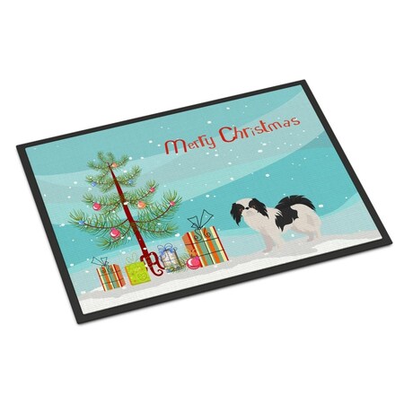 Caroline's Treasures CK3462MAT Japanese Chin Christmas Tree Doormat 18x27 Front Door Mat Indoor Outdoor Rugs for Entryway, Non Slip Washable Low Pile