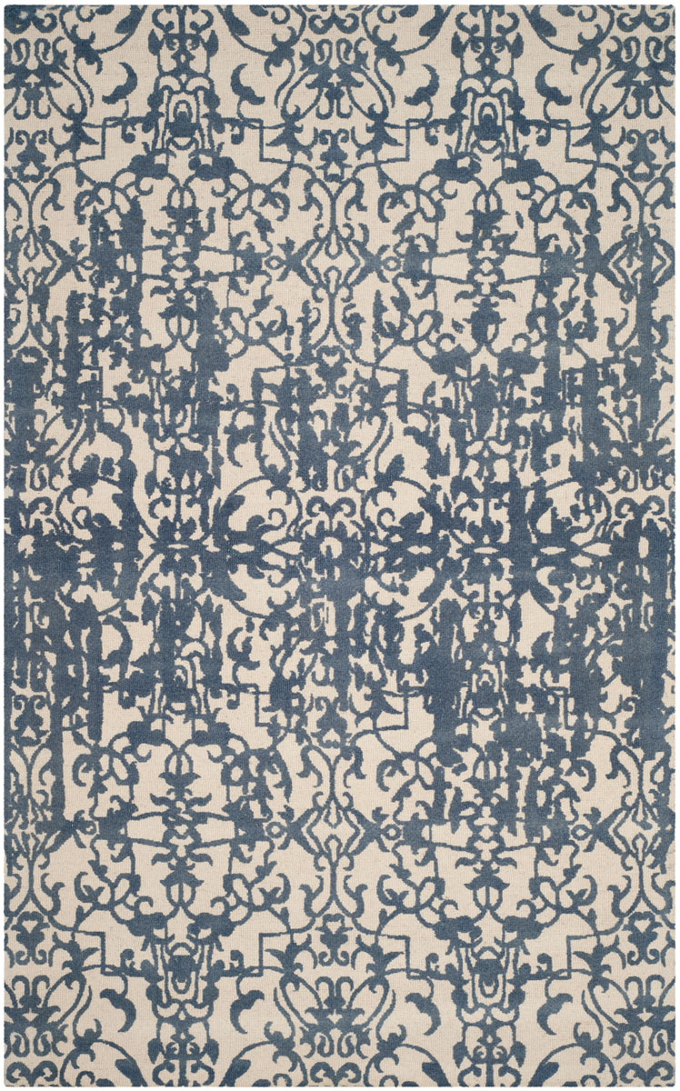 SAFAVIEH Restoration Vintage Collection Accent Rug - 4' x 6', Ivory & Blue, Handmade Distressed Wool, Ideal for High Traffic Areas in Entryway, Living Room, Bedroom (RVT101A)