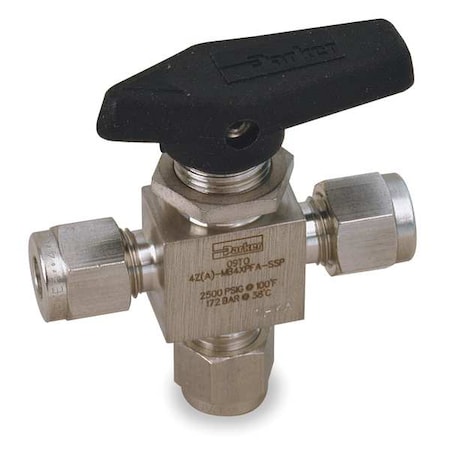 Parker MB Series Stainless Steel 316 Ball Valve, 3-Port Diverting, 1/4" A-Lok Compression Fitting
