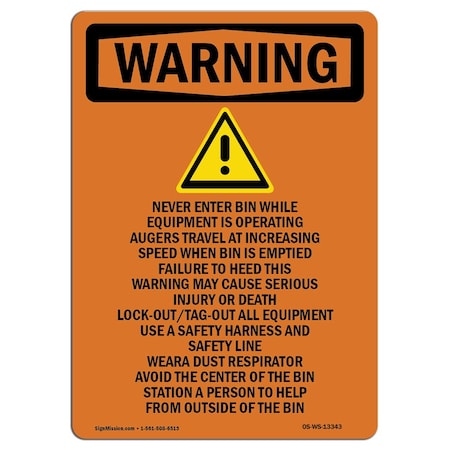 OSHA WARNING Sign, Never Enter Bin While W/ Symbol, 14in X 10in Rigid Plastic