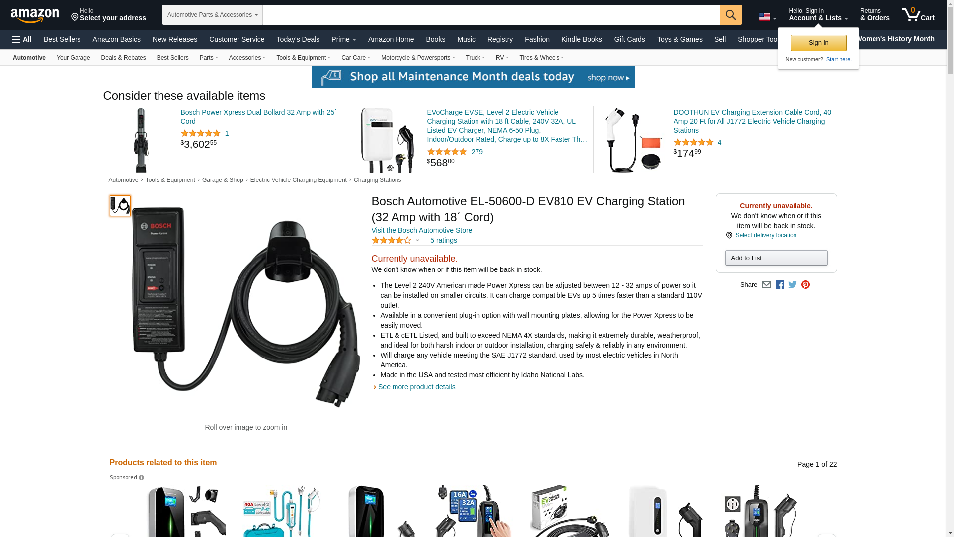 Bosch EV810 EL-50600-D EV Charging Station (32 Amp with 18´ Cord)