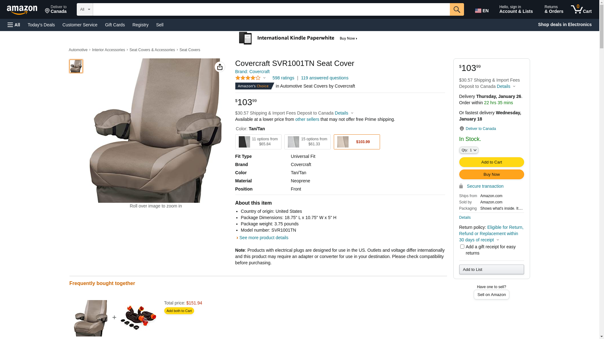 Covercraft SVR1001TN Seat Cover, Tan/Tan