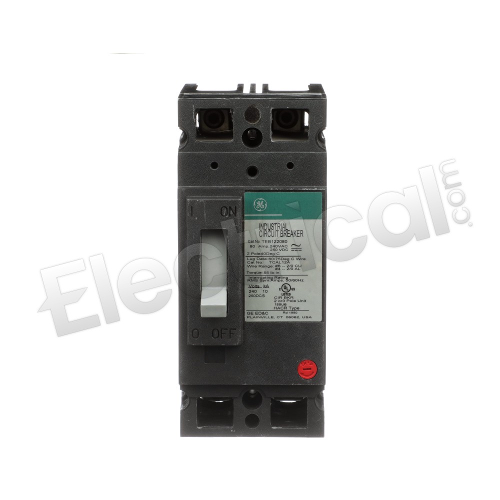 Mfr Brand Name: GE / Catalog No.: TEB122080 / Product Name: GE TEB122080 80A 240V 2P 10K USED / Model: TEB122080 / Poles: 2 / Amps: 80 / Volts: 240 / AIC: 10