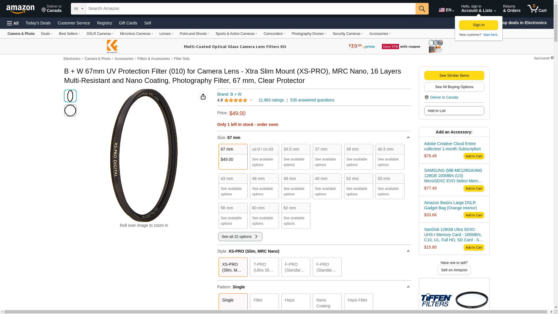 ![]() bhphotovideo.com | BWUVXSP67 | 1 | -2 | 1 | 1 @ $34.95 |