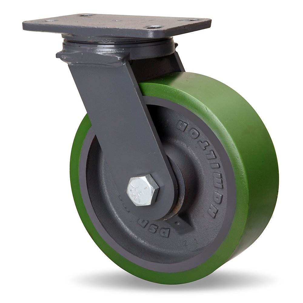 Extended Service Swivel Caster, 8" x 3" Duralast Polyurethane (95A) on Cast Iron Wheel