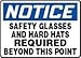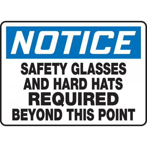 NOTICE SAFETY GLASSES AND HARD HATS REQUIRED BEYOND THIS POINT Sign - 10" x 14" Dura-Fiberglass