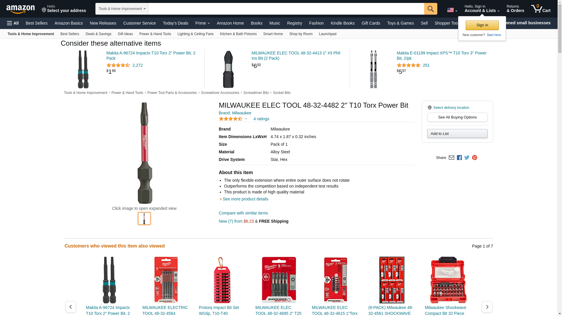 | ToolUp.com | MILWAUKEE 48-32-4482 | 1 | -2 | 1 | 1 @ $1.76 |