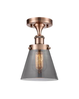 INNOVATIONS LIGHTING 916-1C-AC-G63 BALLSTON SMALL CONE 1 LIGHT 6 INCH PLATED SMOKE GLASS SEMI-FLUSH MOUNT CEILING...
