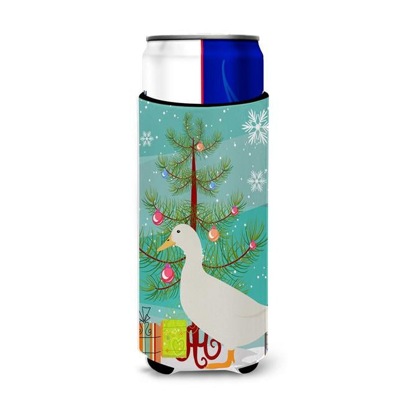 Caroline's Treasures BB9227MUK American Pekin Duck Christmas Ultra Hugger for slim cans, Teal Can Cooler Sleeve Hugger Machine Washable Drink Sleeve Hugger Collapsible Insulator Beverage Insulated Hol