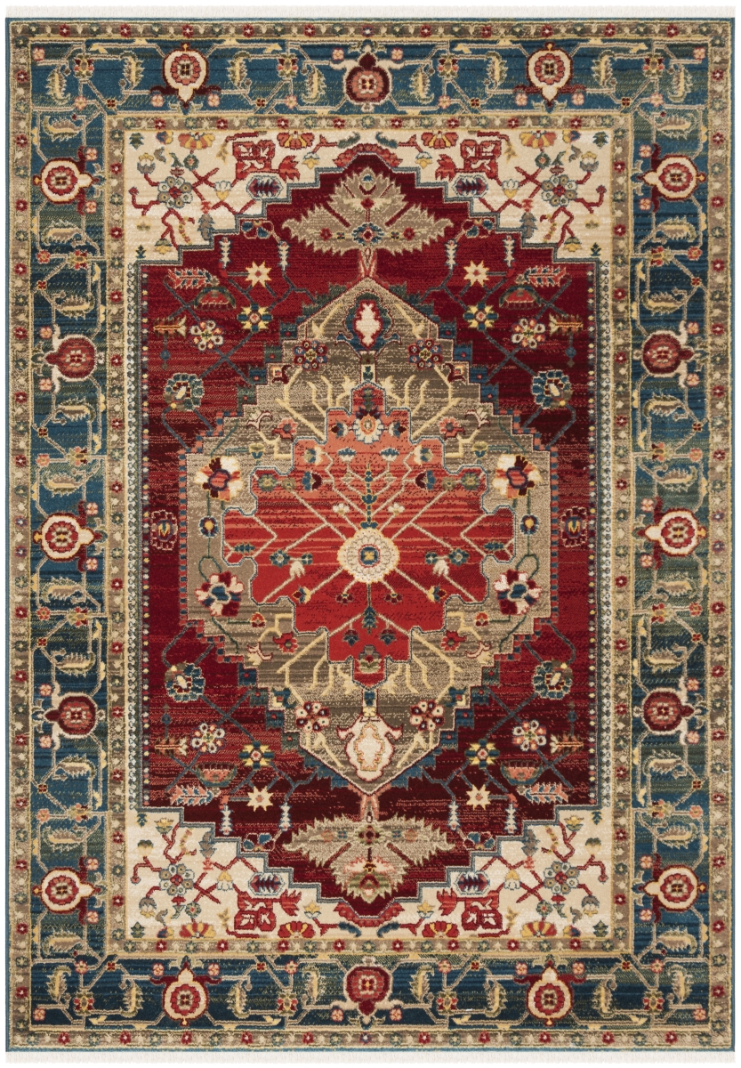 Safavieh KSN306M-5 Kashan Machine-Made Medium Rectangle Area Rug, Blue & Red - 5 ft.-1 in. x 7 ft.-5 in.