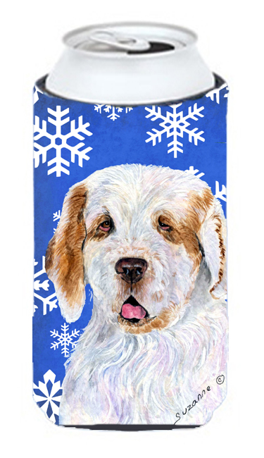 Caroline's Treasures SS4638TBC Clumber Spaniel Winter Snowflakes Holiday Tall Boy Hugger Can Cooler Sleeve Hugger Machine Washable Drink Sleeve Hugger Collapsible Insulator Beverage Insulated Holder