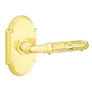 Brass Designer Levers Collection - Passage Right Handed Ribbon & Reed Lever With #8 Rose in Unlacquered Brass by Emtek Hardware - 8108234RBLRHUS3NL | MyKnobs