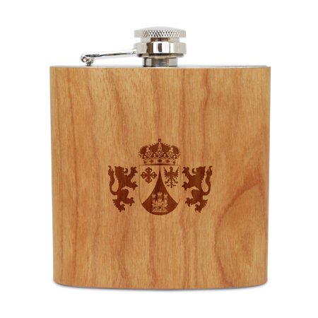 <ul> <li>Materials: High Quality Stainless Steel with Cherry Wood Veneer (Grain differs slightly due to nature of wood)</li> <li>Beautiful Laser Etched Design</li> <li>Capacity: 6 oz (approx. 7 shots)</li> <li>Dimensions: 4.3 inches tall x 3.6 inches wide. Curved design for an easy and comfortable grip</li> <li>Laser Cut & Etched in USA</li> </ul>
