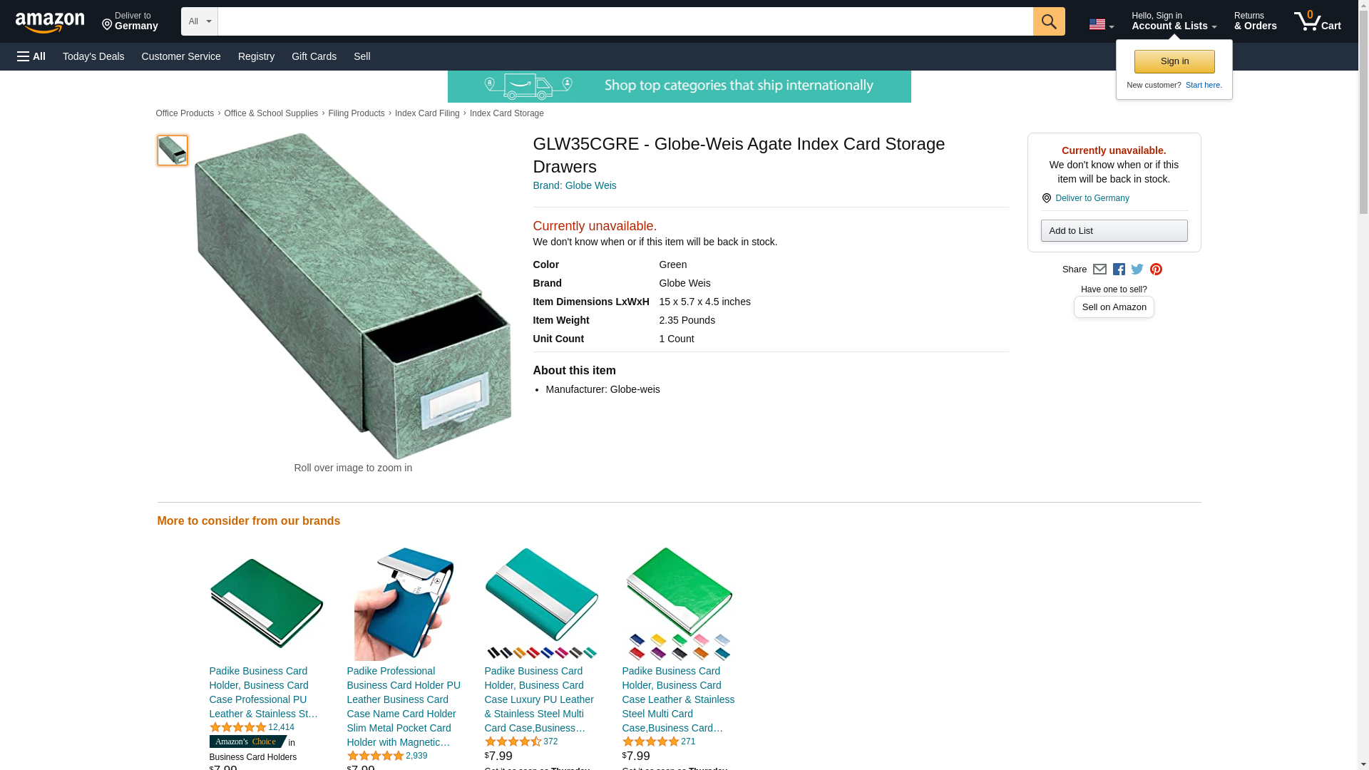 GLW35CGRE - Globe-Weis Agate Index Card Storage Drawers
