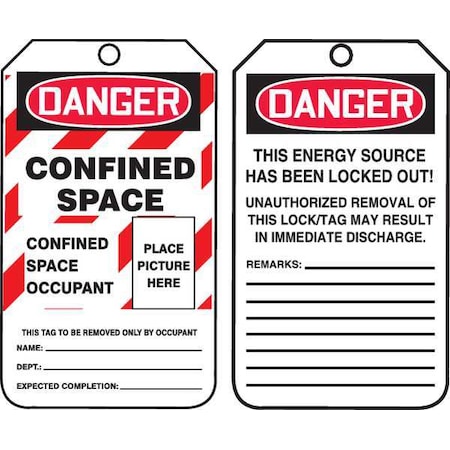 | Feature | Technical Specification Item Danger Tag Material Plastic Legend Confined Space Occupant (w/Photo) |