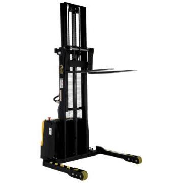 Adjustable Double Mast Stacker Works with Pallets and Skids Adjustable Forks and Legs Features 1.0 KW drive and 2.0 KW lfit motor 3-4 hour operation at full charge- 8 when used intermittently Powered with two 12V batteries Includes 78-85 Ah lead acid deep cycle batteries, integral battery charger, and battery level gauge Extra voltage offered with AGM battery upgrade at the bottom of the page Transports Loads Quickly with Less Effort Extremely Safe Order Now!