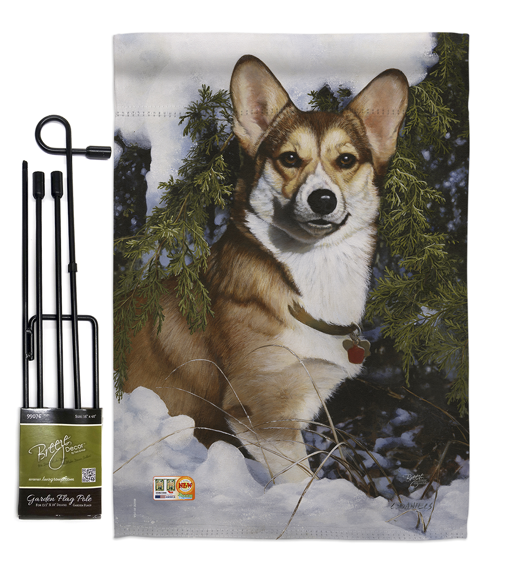 Breeze Decor BD-PT-GS-110088-IP-BO-D-US16-AL 13 x 18.5 in. Corgi Nature Pets Vertical Double Sided Mini Garden Flag Set