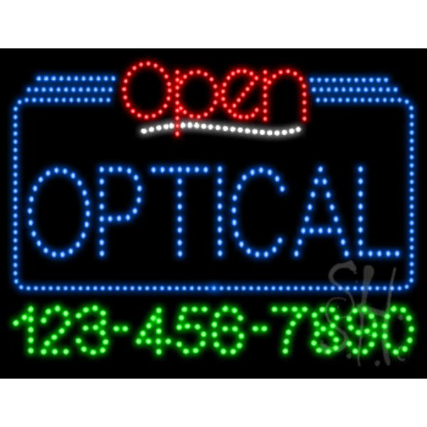 Everything Neon L100-6090 24 x 31 x 1 in. Optical Open with Phone Number Animated LED Sign - Red, White & Blue