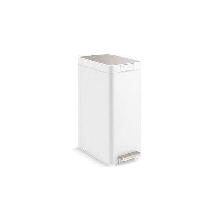Crafted with thoughtful details and smart functionality, the Kohler step trash can collection will simplify your daily home routine and meet the style demands of its surroundings. This 13-gallon slim step trash can has been designed to fit and any brand of 13-gallon trash bags. Its bifold lid slides open with a sturdy foot pedal, allowing for hygienic, hands- use. The trash can has an efficient footprint with clean lines and flush features, so it can be placed in compact locations—right against the wall or cabinets—with a unique lid design that stays clear of its surroundings during operation and bag changes.