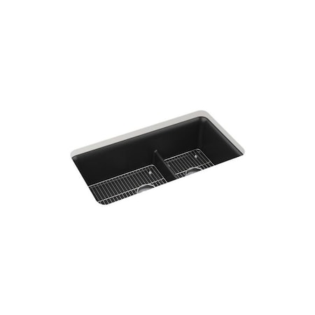 KOHLER Neoroc Undermount Double Bowl Kitchen Sink, Composite Sink with Smart Divide, 33" Double Offset Bowl with Sink Racks
