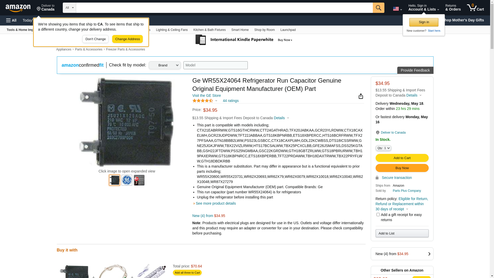 | Partstown | GEWR55X24064 | 1 | 1 | 1 @ $37.62 |