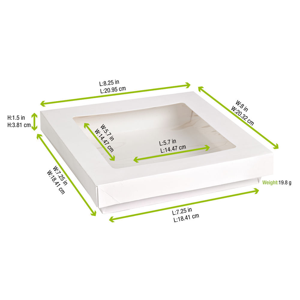 PacknWood White Square Paper 2-Piece Box with Window Lid, 42 oz Capacity, 7.3" x 7.3" x 1.6" (Case of 200). Safe for ...