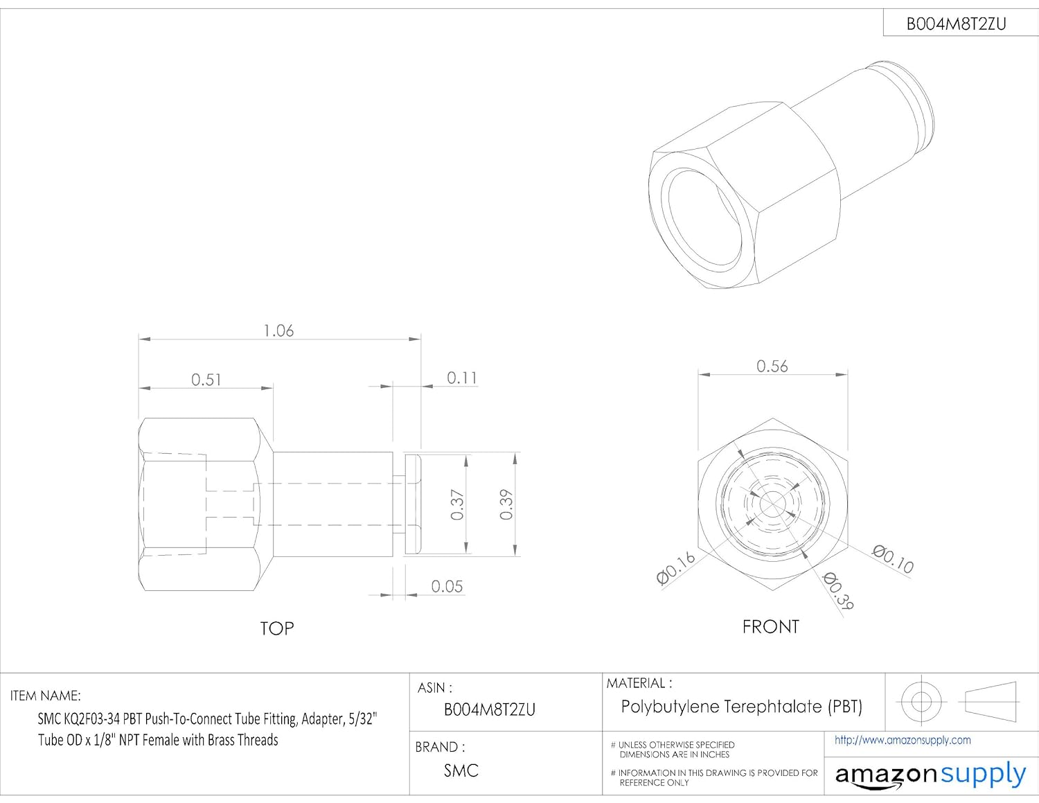 SMC KQ2F03-34A Brass Push-to-Connect Tube Fitting, Adapter, 5/32" Tube OD x 1/8" NPT Female