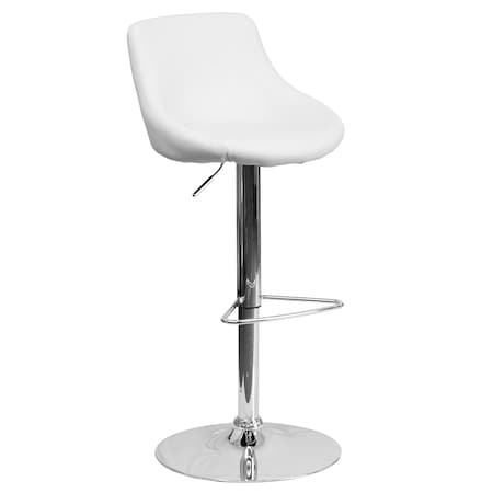 Flash Furniture Contemporary White Vinyl Bucket Seat Adjustable Height Barstool with Chrome Base