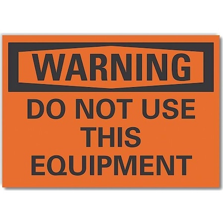 Accident Prevention Warning Label, Horizontal Rectangle, Number of Printed Sides 1, English, Sign Format Traditional OSHA, Sign Legend Do Not Use This Equipment, Sign Legend Background Color Orange, Sign Legend Style Text
