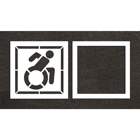 Pavement Stencil, Character Height 39 In., Character Width 39 In., Material Polyethylene, Thickness 0.063 In., Overall Height 88 In., Overall Width 47 In., Self-Adhesive No, Magnetic/Nonmagnetic Nonmagnetic, Reusable Yes, Number of Pieces 2, Color White, Stencil Type Symbol, Stencil Application Parking Lot, Stencil Character Handicap Symbol, Interlocking No, Duty Light