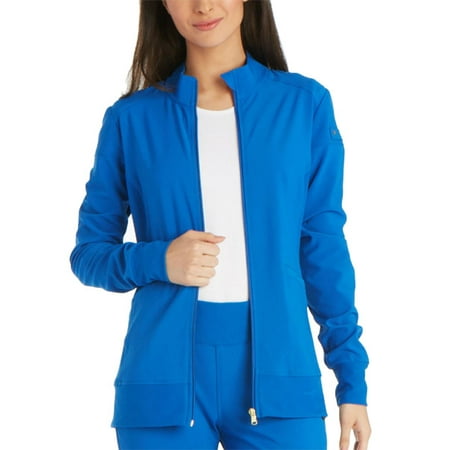 <p>A Sporty, Contemporary fit warm-up jacket features two front welt pockets and a front zip closure with zipper garage to protect your neck. Also featured are sleeve seaming detail, an instrument loop with signature logo rivet on left sleeve, front and back yokes, and front and back princess seams. Front side panels, waistband and cuffs are in a soft, stretchy knit for extra comfort. Center back length: 26 </p>