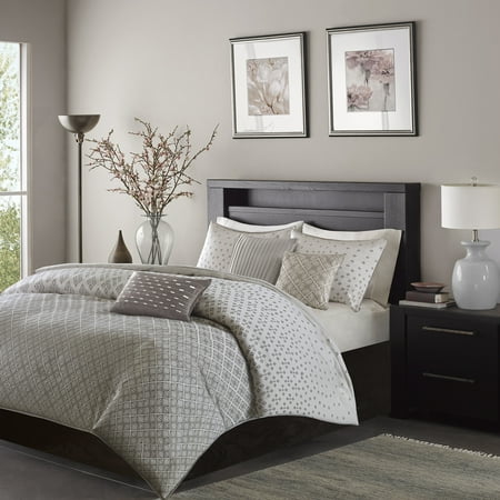 <br /> <b>Home Essence Hudson 6-Piece Duvet Cover Set:</b> <ul> <li>Full/Queen set includes: 1 duvet cover (90" x 90"), 2 standard shams (20" x 26"), 3 decorative pillows (18" x 18"/12" x 18"/16" x 16")</li> <li>King/Cal King set includes: 1 duvet cover (104" x 92"), 2 king shams (20" x 36"), 3 decorative pillows (18" x 18"/12" x 18"/16" x 16")</li> <li>Pattern: jacquard</li> <li>Duvet/sham: 100 percent polyester jacquard, 100 percent brushed polyester reverse</li> <li>Care: machine wash cold</li> </ul>