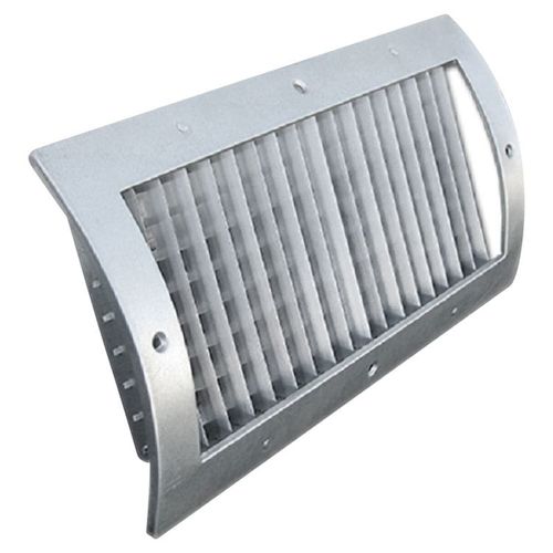 Discount price available on the 12" x 4" Radius Spiral Pipe Grille, Double Deflection, Half Scoop Extractor, Galvanized - Shoemaker RS34-SC-GALV-12X4 at PlumbersStock - quality Shoemaker Manufacturing supply.