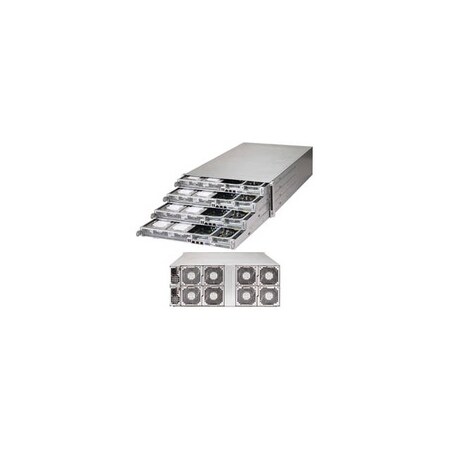 <P><B>Specifications</B></P><UL><LI><B>Mfr Part Number:</B> SYS-F617H6-FTL+<LI><B>Motherboard:</B> Super X9DRFF-7G+<LI><B>Processors per Node:</B> Dual LGA2011<UL><LI>Support Intel Xeon E5-2600 Processors<LI>Cache up to 20MB<LI>QPI up to 8 GT/s<LI>Support up to 135W TDP</LI></UL><LI><B>Chipset per Node:</B> Intel C602<LI><B>Memory per Node:</B> 16x 240pin DDR3-1600/ 1333/ 1066/ 800 DIMM Slots; Supports up to 512GB ECC/REG Memory or up to 128GB ECC/Unbuffered Memory<LI><B>Slots per Node: </B>1x PCI-Express 3.0 x8 Slot (Low-profile, via riser card), 1x PCI-Express 2.0 x4 Slot (Low-profile, via riser card)<LI><B>SATA per Node:</B> 2x SATA3 Ports (via AHCI), Support RAID 0, 1; 4x SATA2 Ports (via AHCI), Support RAID 0, 1, 5, 10<LI><B>SAS per Node:</B> 8x SAS2 Ports, Support RAID 0, 1, 10<LI><B>Video per Node:</B> Matrox G200eW Graphics<LI><B>LAN per Node:</B> Intel i350 Dual Port Ethernet Controller; 1x Realtek RTL8201F PHY (dedicated IPMI)<LI><B>Drive Bays per Node:</B> 8x 3.5" Fixed SAS/SATA HDD Trays, 4x 3.5" Fixed SATA HDD Trays<LI><B>Ports per Node:</B> 3x USB 2.0 Ports (2 rear, 1 Type A), 1x VGA Port, 1x Serial Port, 2x RJ45 LAN Ports, 1x RJ45 Dedicated IPMI LAN Port<LI><B>Form Factor:</B> 4U Rackmount<LI><B>Power Supply:</B> 1620W 80 PLUS Platinum Certified High-efficiency Redundant Power Supply w/ PMBus<LI><B>System Cooling:</B> 8x 8cm Heavy Duty Fans w/ Air Shroud and PWM Fan Speed Control<LI><B>Front Panel:</B><UL><LI><B>Buttons: </B>Power On/Off, System Reset<LI><B>LEDs: </B>Power Status, 2x Network Activity, System Overheat, Power Fail</LI></UL><LI><B>Color:</B> Black<LI><B>Dimensions (WxDxH):</B> 17.63 x 35.00 x 6.96 inch / 448.0 x 889.0 x 177.0 mm<LI><B>Weight:</B> 200.0 lbs / 90.71 kg<LI><B>RoHS Compliant</B></LI></UL>