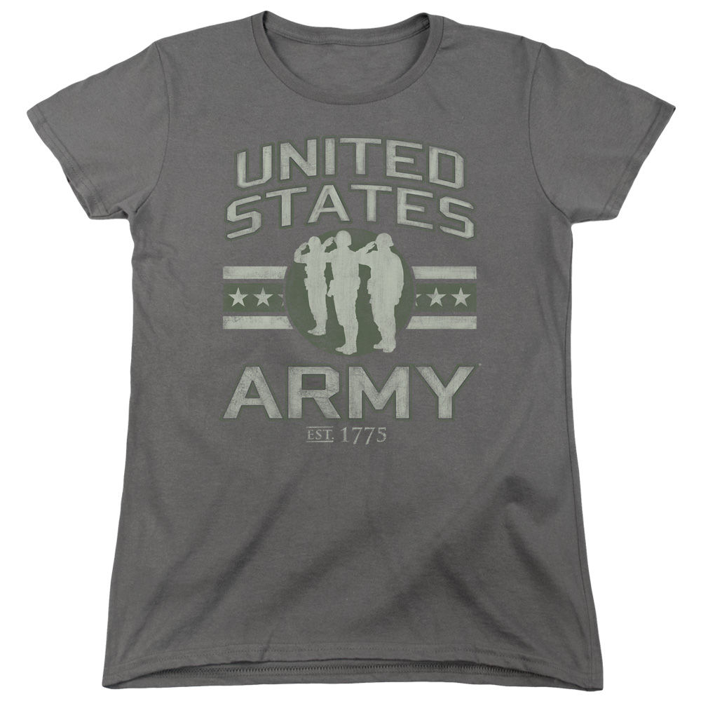 Trevco AR130-WT-2 Army & United States Army Womens Cotton Short Sleeve T-Shirt, Charcoal - Medium