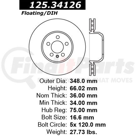 Centric Premium High Carbon Alloy Brake Rotor - 125.34126