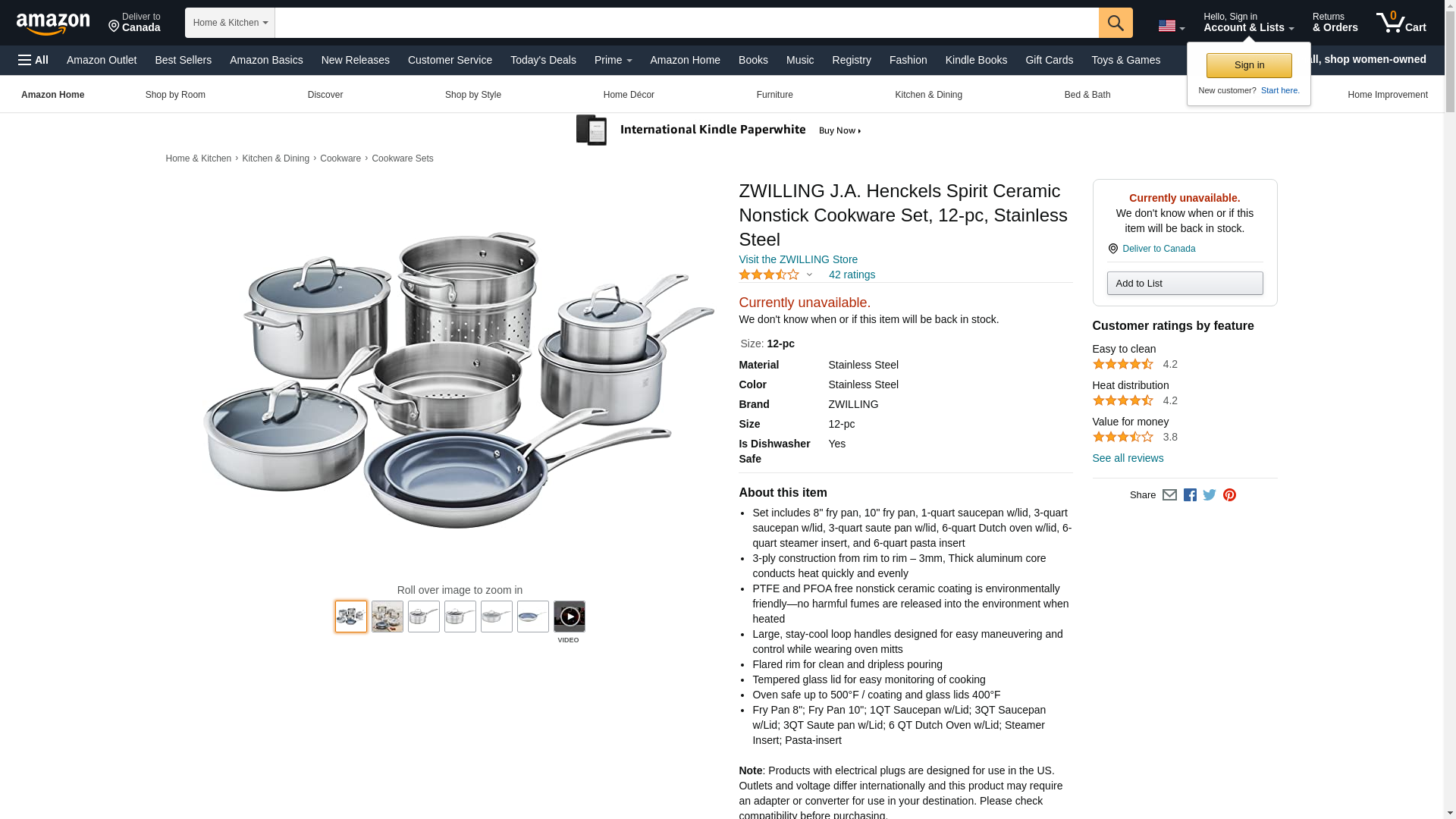 ZWILLING J.A. Henckels Spirit Ceramic Nonstick Cookware Set, 12-pc, Stainless Steel