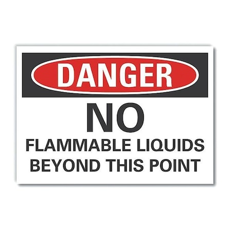 Flammable Material Danger Label, Horizontal Rectangle, Number of Printed Sides 1, English, Sign Format Traditional OSHA, Sign Legend No Flammable Liquids Beyond This Point, Sign Legend Background Color White, Sign Legend Style Text