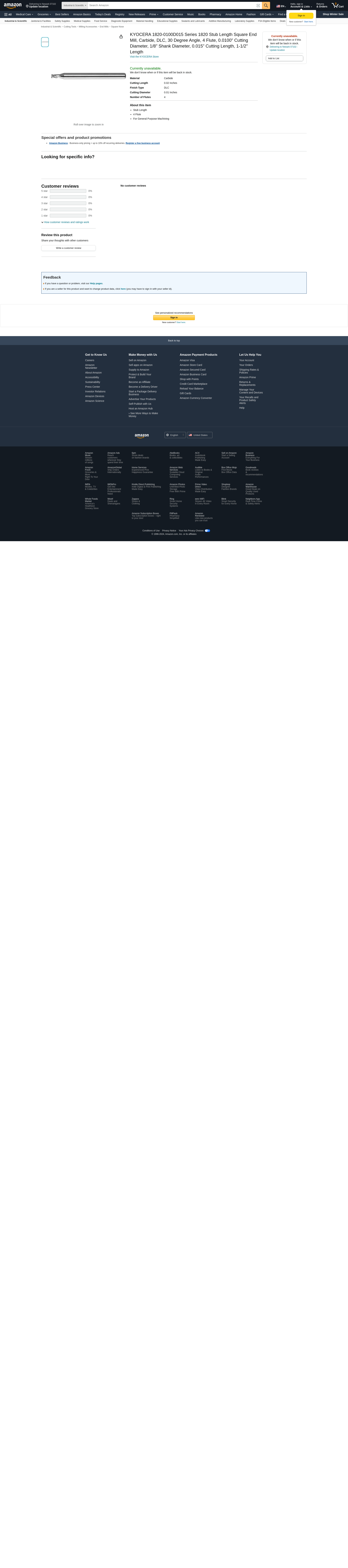 KYOCERA 1820-0100D015 Series 1820 Stub Length Square End Mill, Carbide, DLC, 30 Degree Angle, 4 Flute, 0.0100" Cutting Diameter, 1/8" Shank Diameter, 0.015" Cutting Length, 1-1/2" Length